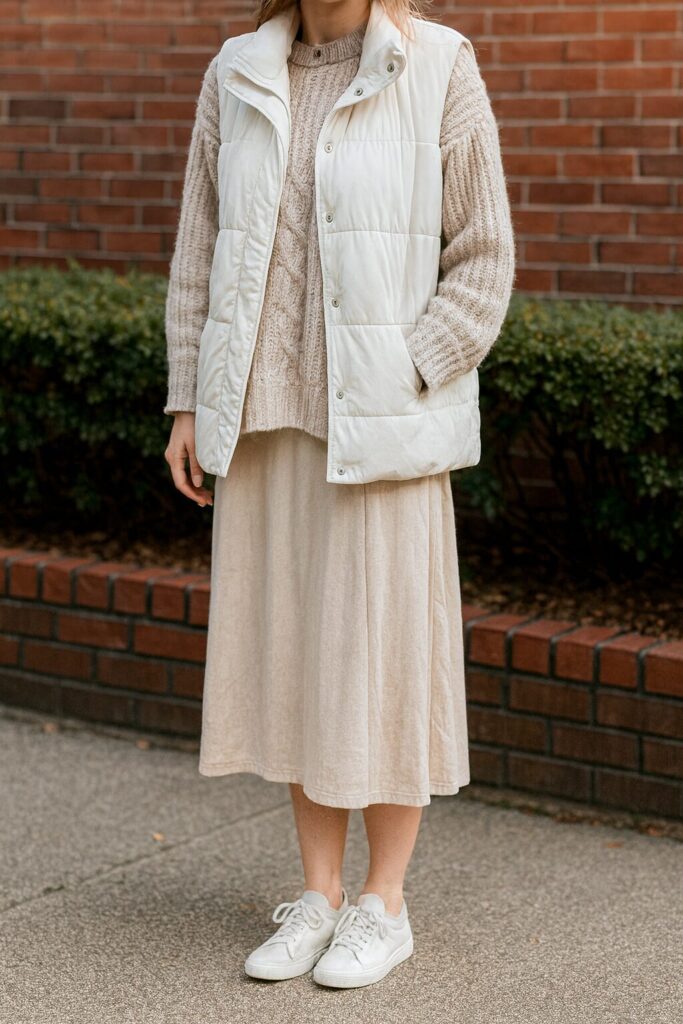 ■3. ニット × ベスト × ロングスカートの黄金バランス